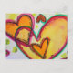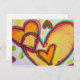 Persika och orange hjärta förenas som blåsande bubblor drivs ihop. Varje hjärta spåras med hjälp av en grönt. Blek gult färg är som konfetti mellan hjärtan. Vattenfärgsmålningen har ett ljus lagrar av guld och rosa överst. Anpassa vykortet med din personliga text och bilder!