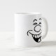 Stora mugg har en lätt design av ett skrattande ansikte. Du kan ändra färg på olika inslag i designen. Om du vill göra det klickar du på "Redigera den här designen". I redigeringsavsnittet klickar du på bilden och väljer önskat färg för de olika inslagen på färgrutan färg.