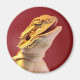 En skäggig drake uppåt och tittar lycklig och glatt.