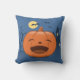 Underbart skrattande Halloween-pumpa. En död träd, en läskig mansion, några fladdermöss och måne ses i bakgrunden.