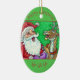 LAUGHING SANTA & REINDEER CHRISTMAS JULGRANSPRYDNAD KERAMIK