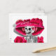 Laughing Skeleton Woman in Red Bonnet Vykort