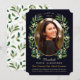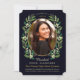 En klassisk lagerkrans inramar denna en-fotots examens inbjudan. Anpassa med din egen text och favoritfoto. Grattis på examen!