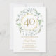 En dekorativ lagerkrans omger en falsk guldfoliekantrand som innehåller texten "40 år". Nedanför är detaljer om din födelsedagsfest ställda i klassisk elegant text. Baksidan har monograminitialer placerade inom en matchande blomster- och falsk guldfoliekrans. Designad av Thisisnotme