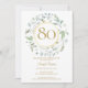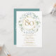En dekorativ lagerkrans omger en falsk guldfoliekantrand som innehåller texten 80 år. Nedanför dina födelsedagsdetaljer står i klassisk elegant text. Baksidan har monograminitialer satta inom en matchande blomster- och falsk guldfolierad krans. Designad av Thisisnotme