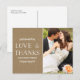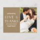 Ett elegant, ett strålande tack som du har med söt lagerblad och en papper stil-bakgrund. Anpassa med ett foto från din speciella dag!