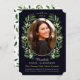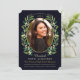 En klassisk lagerkrans inramar denna en-fotots examens inbjudan. Anpassa med din egen text och favoritfoto. Grattis på examen!
