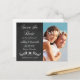 Chalkboard bilder är alltid populärt och den här eleganten är inget undantag. Ditt foto (svart och vitt eller färg) finns på högerna, med ett söt-skript silvret "Spara datum" till lämnat. Din anpassningsbar och ett löv-emblem i en krita med silver-hjärta är också lämnat. Kortets baksida har ytterligare en text fält om det behövs. All text, fram och tillbaka, är enkelt att anpassa.