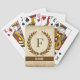 En känslig lagerkrans läggs över en papper bakgrund i det klassiska romerska stil. Den här utformningen har monogrammet "F" i en rik sienton. Anpassa med vilken namn som helst för att få en Fars dag- eller bröllopsfest som verkligen är anpassad. Monogrammade spelkort ger tankeväckande gåvor till pappa, farfar, bror, morbror, make, brudgumm, bäste man eller marskalkar. Designtips: För det teckensnitt som visas här användor du alla versaler för namn.