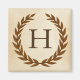 En känslig lagerkrans läggs över en papper bakgrund i det klassiska romerska stil. Den här utformningen är personlig med monogrammet "H" i en rik sienton.