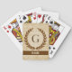 En känslig lagerkrans lagras över en vintage lakan musikbakgrund i den klassiska romerska stil. Den här utformningen har monogrammet "G" i en rik sienton. Anpassa med vilken namn som helst för att få en Fars dag- eller bröllopsfest som verkligen är anpassad. Monogrammade spelkort ger tankeväckande gåvor till pappa, farfar, bror, morbror, make, brudgumm, bäste man eller marskalkar. Designtips: För det teckensnitt som visas här användor du alla versaler för namn.