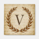 En känslig lagerkrans lagras över en vintage lakan musikbakgrund i den klassiska romerska stil. Den här utformningen är personlig med monogrammet "V" i en rik sienton.