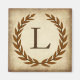 En ömtålig lagerkrans läggs över en åldras papyrus pappra bakgrund i den klassiska romerska stil. Den här utformningen är personlig med monogrammet "L" i en rik sienton.