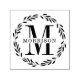 Frimärke har en lagerkrans ram kring ett inledande och efternamn på ett monogram.
