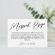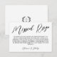 Låt dina gäster veta att era bröllopsgästnummer har lämnats in och att de inte längre kan delta eftersom de missat sista anmälningsdag med detta eleganta och artiga försent RSVP-kort i en svart-vit typografidesign och, på baksidan, ett laurbärssnurr monogram.