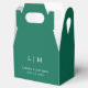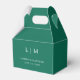 Enkel än elegant bröllop-favoritruta med en modern minimalistisk utformning med ditt två brev monogram tillsammans med namn och datum. All inslag är vit över en juvelfärgad bakgrund som framträder i grönten och kan ändras i designredigeringen i verktyg. De här klassiska bröllopsfavoritboxarna går bra tillsammans med alla stil i bröllop.