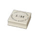Modern och minimalistisk cirkel bröllop returadress gummi frimärke med två inledande monogram i mitten och ditt namn och din returadress i ett serif-teckensnitt längs kant. En enkel design som fortfarande visas som chic och snyggt. Den här returadressen gummi frimärke är ett underbart sätt att fästa eleganten vid kuverten.