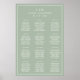 Ett enkelt sätesdiagram i grönt bröllop poster med en elegant och tidlös utformning med två brev monogram tillsammans med namn, datum och sittplatskort omgivet av ett tunt gräns. Mallen kan uppdateras med bord eller i alfabetisk ordning. Teckensnittet och färg kan ändras i verktyg för designredigering. En ren och klassisk perfekt för design för ett par som vill ha en traditionell stil-design med modern beröring.