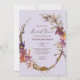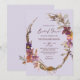 Fira den blivande bruden med vår förtrollande bröllopsfest-inbjudan, med en vacker, handmålad akvarellkrans av vilda blommor mot en mjuk lila bakgrund. Ömtåliga blommor och frodig grönska flätas samman och skapar en romantisk och fantasifull ram som perfekt fångar essensen av en blomstrande kärlekshistoria. Tryckt på premiumkartong utstrålar denna inbjudan elegans och charm och sätter tonen för en minnesvärd fest fylld av glädje och tillgivenhet.