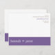 Färgplan Bröllopsdetaljer modern bröllopsinbjudan för mottagning. 4,25" x 5,5" platta kort med vita kuvert. Utvald text och en banner i sommarens 2011-trendfärg mörk lavendel mot en vit bakgrund.