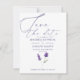 Mjuka, vackra lavendelblommor accentuerar denna enkla bröllopsinbjudan design. För mer bröllopspapper och tillbehör, se Lavendel Bliss vattenfärg tema.