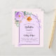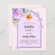 En rosafärgad bakgrund med en lila och violett färgad båge. Dekorerad med en blomster-, ros-, grön vattenfärgad eukalyptusgrönska och fjärilar. Anpassa och lägg till ett namn och festdetaljer.