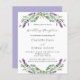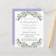 En vit bakgrund dekorerad med lavendelblommor och eukalyptusgrönska. Anpassa med era namn och detaljer.