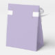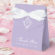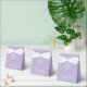 En lavendelfärgad presentask för dop. På klaffen har den en vit vapensköld med ett kors i.
