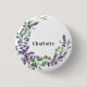 En chic vit bakgrund. Dekorerad med lavendelblommor och eukalyptusgrönska. Personifiera och lägg till ett namn.