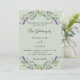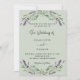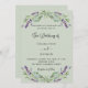 En salvia grön bakgrund dekorerad med lavendelblommor och eukalyptusgrönska. Anpassa med era namn och detaljer.