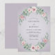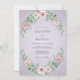 Denna design har en mjuk lavendelbakgrund prydd med ett delikat arrangemang av rosablommiga rosor och kvistar av lavendel. Dämpade salvia gröna eucalyptusblad ger en touch av naturlig elegans till den eteriska akvarellestetiken. Paletten av lila, rosa och salvia skapar en romantisk atmosfär perfekt för en vår- eller sommarhändelse. Subtila konstnärliga penseldrag ger grönsakerna en målerisk textur som känns både tidlös och sofistikerad.