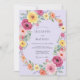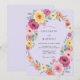 En mjuk lavendelfärgad bakgrund skapar en lugn scen för en livfull display av akvarellblommor. Frodiga rosor i nyanser av magenta, korall och solig gul flätas samman med delikat grön lövverk. Den handmålade estetiken frammanar en romantisk och glad atmosfär perfekt för en säsongsbetonad tillställning. Denna design fångar essensen av en blommande äng under en klar himmel.