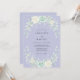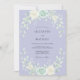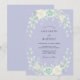 Denna design har en mjuk lavendelfärgad bakgrund prydd med ömtåliga akvarellrosor i nyanser av kräm och mintgrönt. Frodig lövverk och eukalyptus kvistar skapar en romantisk botanisk estetik perfekt för en vår- eller sommarhändelse. Den eteriska färgpaletten av pastellviolett och salvia ger en lugn och sofistikerad stämning.