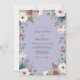 Denna design har en lugn lavendelbakgrund prydd med en delikat samling akvarellblommor. Krämiga anemoneblommor och dammiga rosor är nästlade bland salvia gröna eukalyptusblad och vilda botaniska kvistar. Den måleriska stilen skapar en mjuk, fantasifull stämning perfekt för en romantisk vår- eller sommarhändelse. Färgpaletten med dämpade lila och jordiga gröna nyanser frammanar en eterisk estetik.