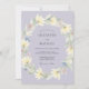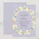 Denna eteriska design har en lugn lavendelbakgrund prydd med ett delikat arrangemang av blekgula magnolior och mjuk grön lövverk. Subtila nyanser av blåa vildblommor tillför en touch av nyckfullhet till den romantiska akvarellestilen. Perfekt för en vår- eller sommarhändelse, den måleriska stilen frammanar en känsla av lugn skönhet och tidlös elegans.