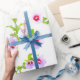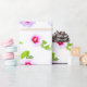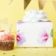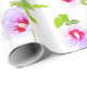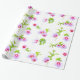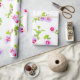 Modern och söt rosa och lila blommor och grönt löv över vit bakgrund