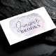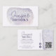 Gör ett statement med detta förtrollande lavendel- och syrliljaglitter-visitenkort. Dess drömska lila nyanser och gnistrande glittereffekt kombineras för en mjuk men sofistikerad design som är perfekt för kreatörer, frilansare och entreprenörer. Lätt att anpassa med en QR-kod för sömlös delning av sociala medier, webbplatser eller kontaktinformation. En chic och professionell touch för modernt nätverkande.
