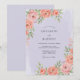 Denna design har en mjuk lavendelfärgad bakgrund prydd med ömtåliga akvarellrosor och frodig grönska. De varma persikofärgade och aprikosfärgade tonerna i blomningarna skapar en vacker kontrast mot den svala purpurfärgen. Perfekt för en romantisk vårfest, den måleriska stilen frammanar en lugn och eterisk atmosfär. De botaniska elementen är arrangerade med en naturlig, luftig känsla för att komplettera ett elegant säsongstema.