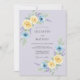 Denna akvarelldesign har en delikat palett av lavendel, mjukt gult och himmelsblått. Levande gula rosor och blå anemoneblommor är parade med doftande lila lavendelkvistar och frodig grönska. Det konstnärliga botaniska arrangemanget skapar en lugn och romantisk atmosfär för en vårhögtid. Dessa blomsterdelar ger en fantasifull och luftig estetik.
