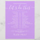 Denna enkla eleganta lavendel syrlilja orkidé bröllopsschema-tidslinje kan anpassas med dina bröllopsdetaljer i modern typsnitt. Designad av Thisisnotme