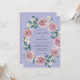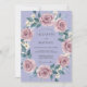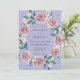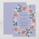 Denna design har en mjuk lavendelbakgrund prydd med ett frodigt arrangemang av dammiga rosor. Ömtåliga vita accentblommor och salvia gröna blad ger en touch av nyckfullhet till den romantiska estetiken. Den måleriska vattenfärgsstilen skapar en lugn och elegant atmosfär för en vår- eller sommarhändelse.