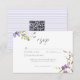 Meddela din dag med detta Lavendel Vildblomma Trädgård Romantiska Bröllop svarskort med en QR-kod, med ömtåliga akvarellblommor på en ljus lavendel-lila bakgrund. Perfekt för en vår- eller sommarträdgårdsbröllop, erbjuder denna vackra design en lekfull och naturlig estetik. Denna romantiska inbjudan är helt anpassningsbar och sätter en vacker, mjuk ton för din fest. Skapad av Simply Farmhouse Press.