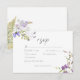 Meddela din dag med detta Lavendel Vildblomma Trädgård Romantiska Bröllop svarskort med middagsalternativ, med känsliga akvarellblommor på vit bakgrund. Perfekt för en vår- eller sommarträdgårdsbröllop, erbjuder denna vackra design en lekfull och naturlig estetik. Denna romantiska inbjudan är helt anpassningsbar och sätter en vacker, mjuk ton för din fest. Skapad av Simply Farmhouse Press.