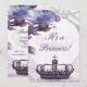 Eleganta diamanter och lavendelfärgade rosor med vintage kunglig krona lila prinsessa barnkalasinbjudan. Denna vackra lavendel- och grå barnkalasinbjudan kan enkelt anpassas för ditt evenemang.