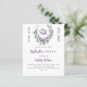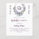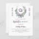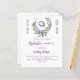Vit bakgrund. En blomsterkrans gjord av lavendelblommor och akvarellfärgad eukalyptusgrönska. Anpassa och lägg till ett namn och detaljer.