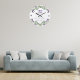 Vit bakgrund, violett, grönt och svart text. Dekorerad med lavendelblommor och eukalyptusgrönska. Personliggör och lägg till era namn och datumet för er bröllopsdag eller årsdag. Urskivans siffror under blommorna.