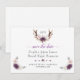 Charmig lavendel rosa bröllopskortdesign med hjorthorn. Den har vackra akvarellhjorthorn prydda med lavendel rosa vita blommor bukett, pilar med hjärtan och blomsterbukett som avdelare och blomsterarrangemang längst ned. Använd Anpassa verktyget för att lägga till din information. För matchande artiklar, besök min Lavendel Blomster Kollektion.