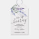Presentkort för mini vinflaska med watercolor lavendel blommor och kluck kluck hurra i skrivstil.