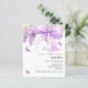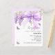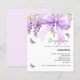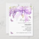 En elegant vit bakgrund, dekorerad med ett stort lavendel, lila färgat band, wisteriablommor, fjärilar och ett gyllene kors. Personifiera och lägg till ett namn och festdetaljer.