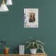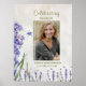 Denna vackra begravningsblomma välkomstskylt med lila lavendelblommor och kvistar, ett foto av din älskade, deras namn och livets datum.